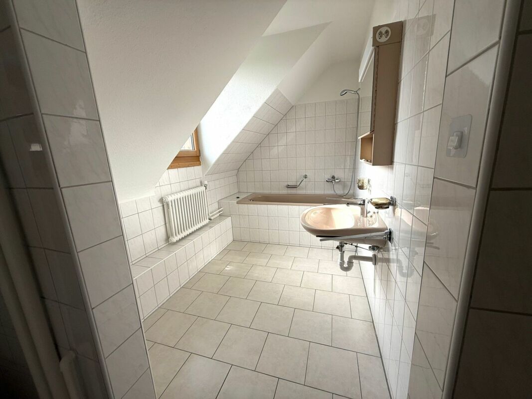 Die Wohnung befindet sich im 2. OG und präsentiert sich geräumig. Die Küche bietet einen gepflegten Standard, das Bad ist mit einer Badewanne ausgestattet und das WC ist separat. Die grosszügigen Räume wurden neu gestrichen, die Böden sind pflegeleicht mit Laminat ausgestattet. Die Wohnung mit ihren leichten Dachschrägen lässt sich gemütliche einrichten. Ein Balkon bietet einen schönen Blick über die Stadt.