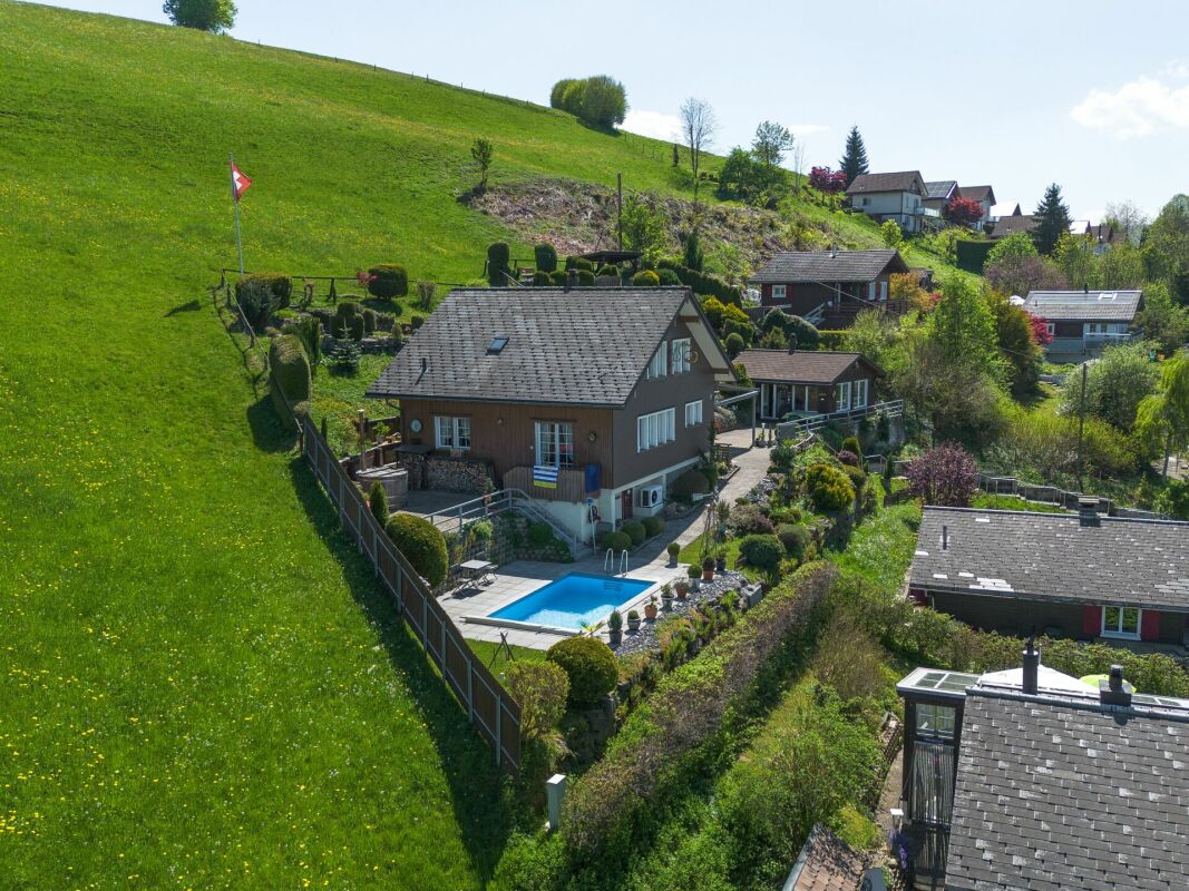 Dieses freistehende, charmante 4.5-Zimmer-Einfamilienhaus bietet rund 110 m² Wohnfläche auf zwei Etagen – perfekt für Erholungssuchende, Naturfreunde oder kreative Köpfe. Umgeben von viel Grün, geniessen Sie hier Ruhe, Komfort und absolute Privatsphäre.